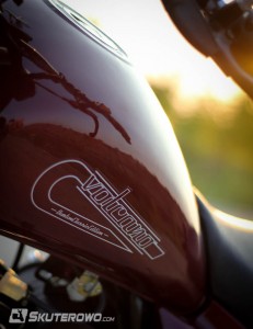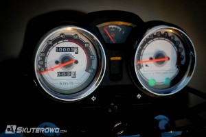 Skupiliśmy się bardziej na detalach. Deska rozdzielcza wygląda naprawdę dobrze. Zwraca na siebie uwagę i bliżej jej do Japonii, niż Chin. Zegary są duże i czytelne. Z kolei na kierownicy bez szału. Znajdziemy tutaj typowe wykończenie z państwa środka. Niby wszystko działa ok, jednak wygląda kiepsko. Zupełnie inna ocena należy się tyłowi. Ledowe lampy pięknie komponują się z błotnikiem. To chyba najmocniejsza strona tej konstrukcji. Przód już tak nie zaskakuje. Z profilu maszyna też wygląda dojrzale, choć wydech przypominający uciętą trąbkę może się nie podobać.