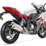 Benelli 302R pod owiewkami jest mocno zbliżone z testowanym przez nas modelem BN302. Sportowy model różni się oczywiście inną pozycją kierowcy, pełnymi owiewkami i agresywnym wyglądem (w tym roku także dzięki nowym malowaniom). 302R to tak naprawdę Tornado 302 pokazane dwa lata temu. Ale nic w tym złego – model ten zebrał sporo pozytywnych opinii.