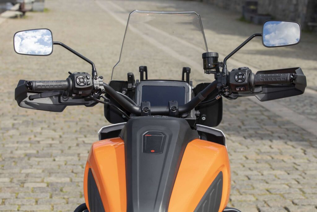 Pozycja za kierownicą jest komfortowa i wręcz nawet jakby miała w sobie coś z cruisera, bo kierownica jest całkiem wysoka i szeroka. Kanapa kierowcy jest miękka i cały dzień w siodle nie powinien nastręczać żadnych problemów, zwłaszcza, jeśli czasem rozprostujesz się na szutrówce.