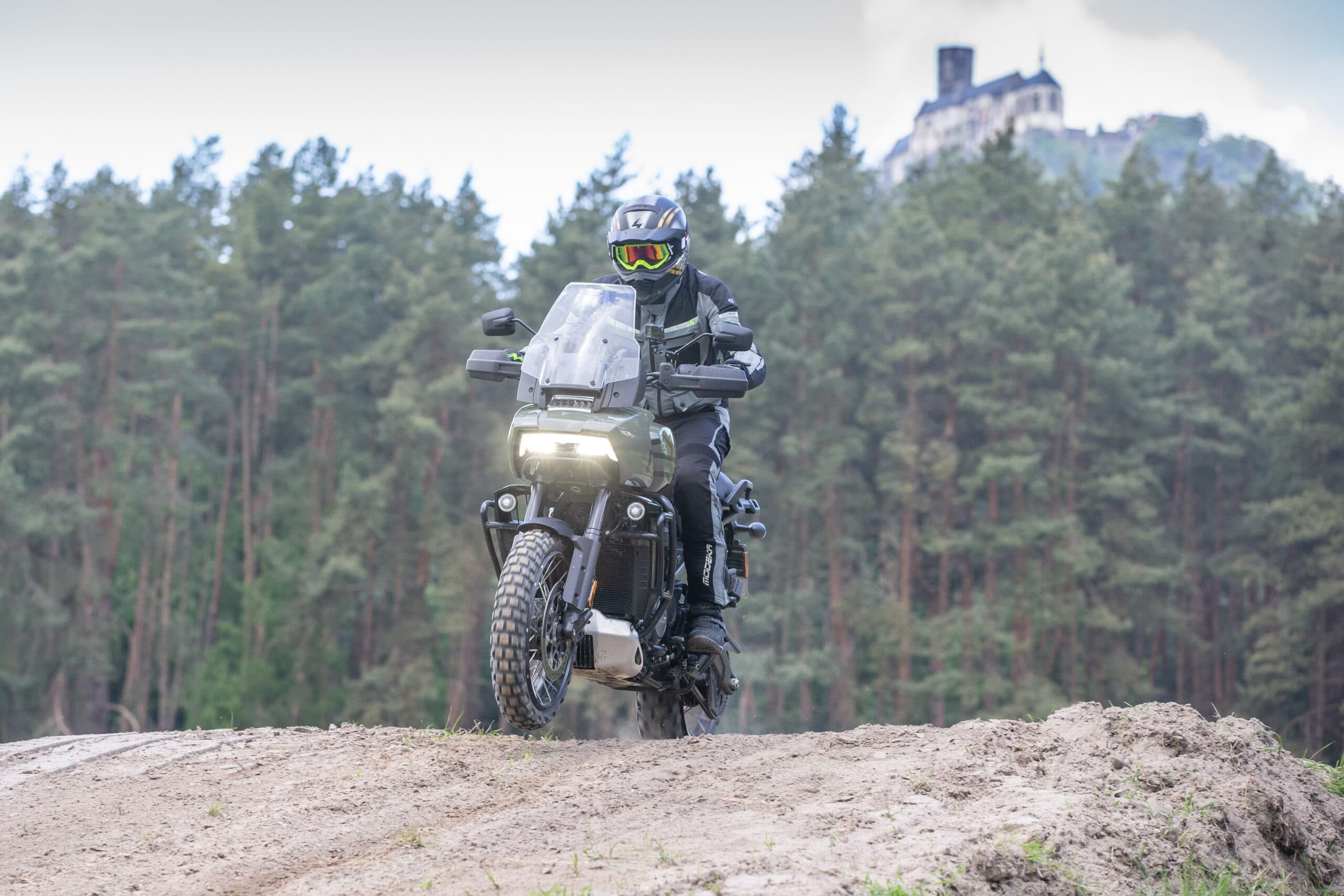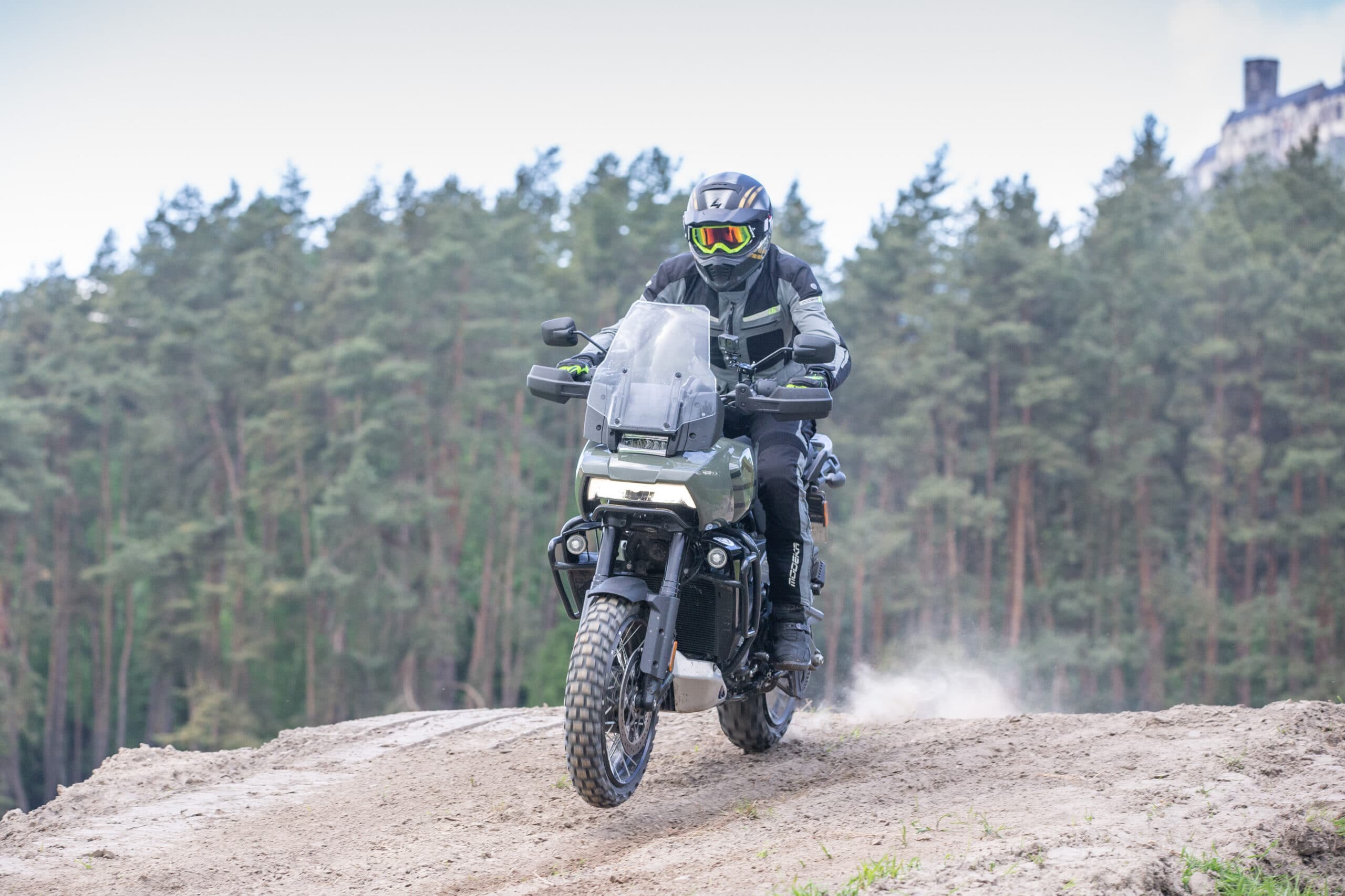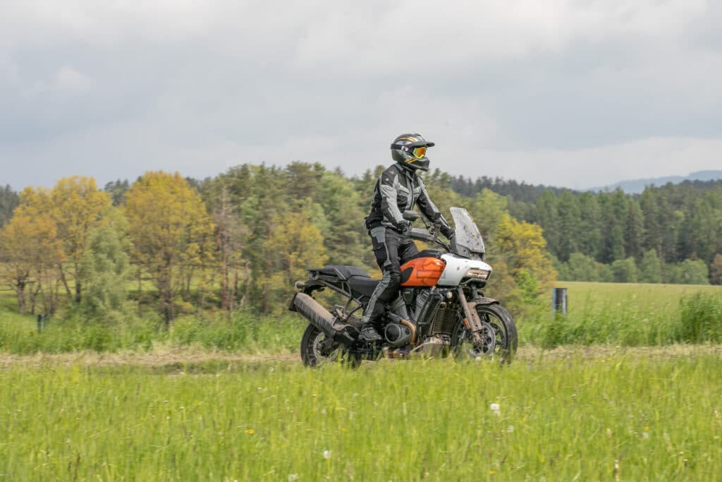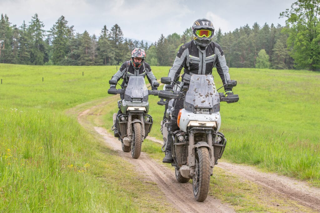 Rzecz miała miejsce w bardzo urokliwej części zachodnich Czech. Jazdy premierowe nowego modelu HD zostały podzielone na dwie sekcje. Pierwszego dnia sprawdzaliśmy jak motocykle jeżdżą po różnego rodzaju nawierzchniach utwardzonych. Stół, dziury, połatany asfalt i stare brukowane serpentyny w górach – było wszystko. Kolejnego dnia przygotowano zdecydowanie bardziej terenowe jazdy i na to czekałem przede wszystkim, bo uważam, że w przypadku dużych motocykli adventure, to właśnie tutaj bardzo szybko dają znać o sobie ewentualne niedociągnięcia konstrukcyjne.