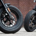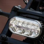 A co z hamulcami? Szczerze mówiąc, patrząc przez pryzmat potencjału jaki generuje H-D Pan America, zdziwiłem się gdy zobaczyłem zaledwie jedną tarczę przy przednim kole. Harleyu, dlaczego? Być może chodziło o cięcie kosztów, być może o cięcie masy, a być może o bardziej customowy wygląd. Należy jednak szybko uspokoić, że układ hamulcowy także nie ma kompletnie nic wspólnego z tym do czego przyzwyczajał nas Harley przez lata. Czterotłoczkowy, mocowany radialnie zacisk Brembo wgryza się w tarczę o średnicy 320 mm i robi to naprawdę dobrze. Jeśli będziesz naprawdę ostro jeździć, to być może odczujesz lekki brak drugiego hebla z przodu. W większości wypadków jego skuteczność i dozowalność okaże się wystarczająca. Zwłaszcza, że sztywny przedni widelec Showa o średnicy rur 43 mm radzi sobie dobrze z siłami skręcającymi. Tylny hamulec to zaledwie jeden tłoczek w pływającym zacisku i 260 mm tarczy – w zupełności wystarcza. Będąc przy temacie opóźnień trzeba zahaczyć o elektronikę. W Sportsterze S mamy w standardzie cornering ABS.