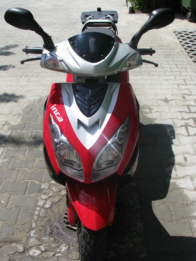 Zadawałem sobie pytanie jak ja będę tym jeździł w miejskim ruchu, przecież ten skuter nie należy do małych. Chodziłem po różnych salonach i wybór ostateczny padł na Inca Street 50 2T. Od początku wiedziałem że szukam mocnego skutera. Wcześniej kilka miesięcy jeździłem skuterem „sygnowanym” spod marki Peugeot, a a dokładniej mówiąc – Faspider Roma. Skuter ten mam do dziś (też ma przebieg ponad 9 tyś. km). Wracam jednak do opowieści na temat Inca. Pewnie wielu z nas widziało ten skuter na naszych drogach. Model ten „stworzono” dla firmy Inter-Cars w 2009 roku. Gdy pierwszy raz zobaczyłem ten skuter sama firma nic mi nie mówiła. Sporo rozmawiałem ze znajomymi i słuchałem uważnie każdej celnej uwagi. Ostatecznie przed dokonaniem zakupy udałem się do salonu w Katowicach gdzie są sprzedawane skutery tej marki i nie tylko. Właściciel salonu Pan Ryszard oraz mechanik Pan Mirek rzetelnie i wyczerpująco odpowiadali na moje pytania. Przekazali mi swoje prywatne opinie na temat tego skutera.