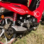 Brak umycia po zimowej przejażdżce odcisnął swoje piętno na silniku, ramie i chromach. Głowica, gaźnik, zębatka tylnego koła i wszystko to, co wykonano z nielakierowanego aluminium pokryło się ohydnym, białym nalotem – „rdzą” aluminium. Chrom na pedale hamulca, kopniaka i dźwigni zmiany biegów także się utleniły, jednak w tym przypadku na standardowy, czerwony kolorek. Niezabezpieczone spawy na wahaczu i ramie także postanowiły nie być gorsze i teraz dają po oczach jak lakier fluo. Tak samo podstawka i stopka. Co innego wydech i tarcze hamulcowe – po nich mogłem się spodziewać takich wybryków, to raczej standard. Ale reszta? Szkoda pisać… Na pierwszy rzut oka skuter wygląda tak, że nadaje się tylko, aby nim wjechać na wagę (na złomie, gdyby ktoś nie wiedział o jaką wagę chodzi). Ale nic… Lada moment mam dwa tygodnie urlopu, to będę musiał coś wymodzić. Dziś już działałem z podnóżkami pasażera, wspomnianymi chromami i wydechem – papier ścierny usunął „firefoxy”, a warstewka wosku powinna zabezpieczyć lakier. Podobnie wydech, oszlifowany czeka na cieplejszą pogodę, aby go pomalować.
