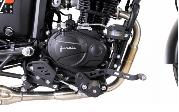 Sprawdzona i ceniona konstrukcja bazująca technicznie na odmianie M12 i M12 Vintage otrzymała ergonomiczną kierownicę oraz nową kanapę. Junak M12 Cafe tym sposobem dostojnie nawiązuje bardzo klasycznych linii, które zostały uzbrojone w bardzo nowoczesne rozwiązania techniczne w postaci komputerowego sterowania jednostką czy światła LED.