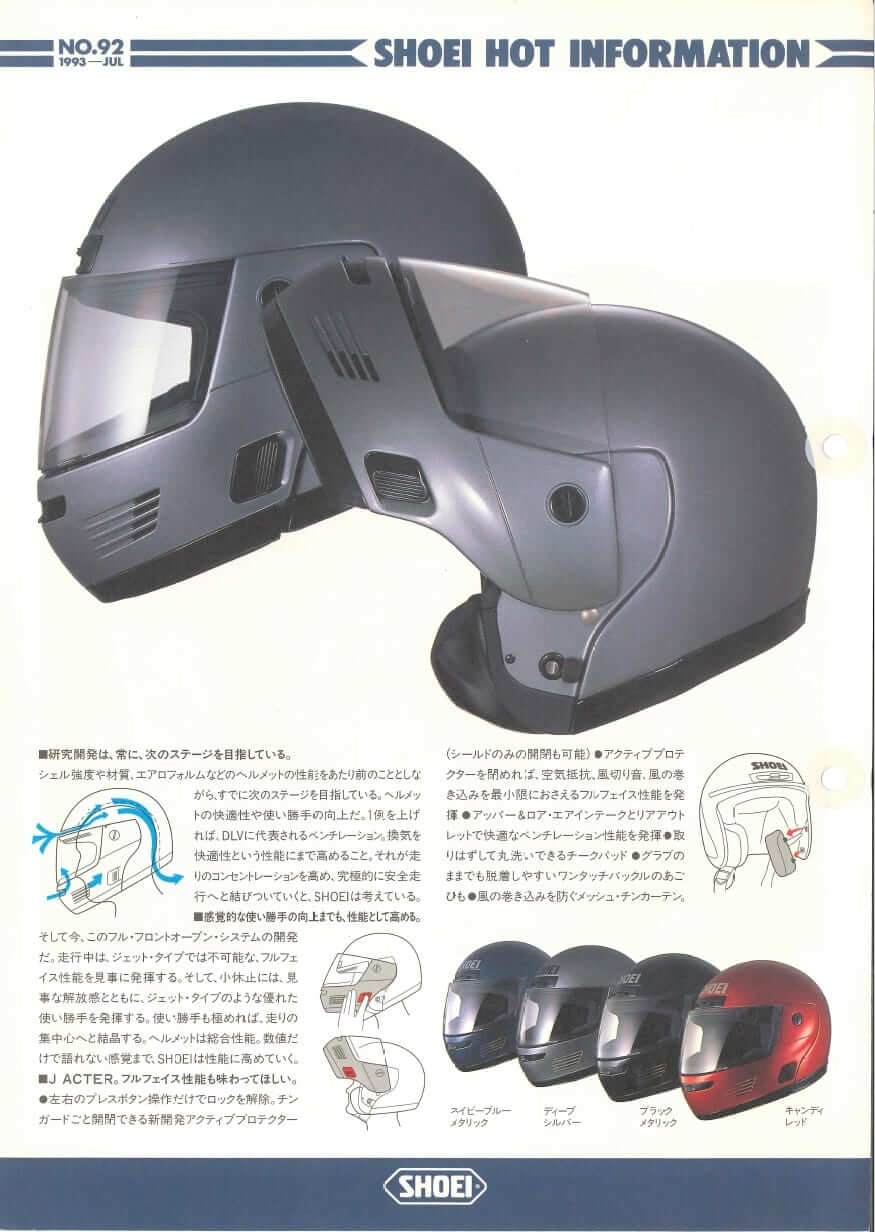 Aby pogodzić ogień z wodą już na początku lat 90’ Shoei opracował model Duotec, który w sezonie 1993 trafił do salonów będąc jednym z pierwszych kasków szczękowych dostępnych na rynku. Duotec był w owym czasie prawdziwą rewolucją, przede wszystkim dzięki temu, że pozwalał na pełne podniesienie szczęki z wizjerem. Rozwiązanie to zostało przyjęte z entuzjazmem przez okularników, palaczy, ale także tych, którzy jeżdżą dużo po mieście i nie lubią krzyczeć w kasku, aby być usłyszanymi i zrozumianymi. Co ważne system zamykania i otwierania szczęki działał pewnie i wygodnie, co przesądziło o pozytywnym przyjęciu produktu przez rynek.