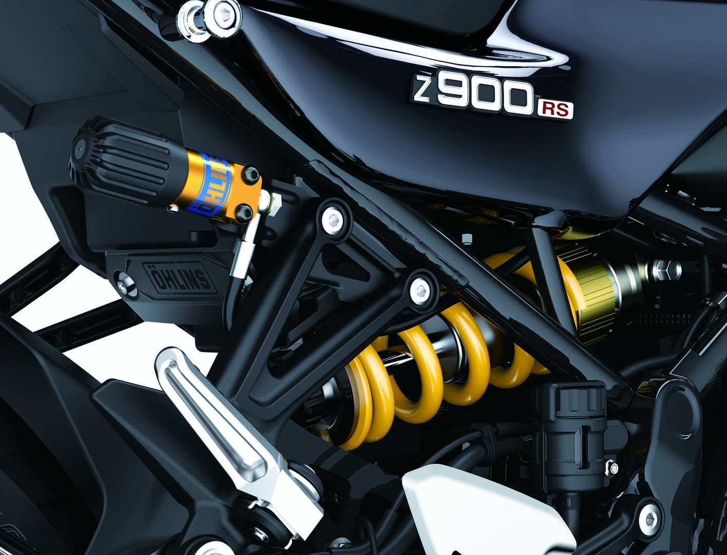 Nowe Kawasaki Z900RS SE na sezon 2022 ożywia jeden z najbardziej atrakcyjnych schematów malowania z lat 70-tych: klasyczną kolorystykę „Yellow Ball” oryginalnego modelu Z1 z 1972 roku (Super Four). Ponadto, a może przede wszystkim, Z900RS SE otrzymał imponujący pakiet modyfikacji zawieszenia i układu hamulcowego. Model SE został wyposażony w tylny amortyzator Öhlins S46 z regulacją napięcia wstępnego. Wyposażony w aluminiowy korpus o konstrukcji jednorurowej, tłok średnicy ø46 mm oraz wewnętrzne komory powietrzno-gazowe, które mają zapewniać doskonałe wyczucie motocykla.