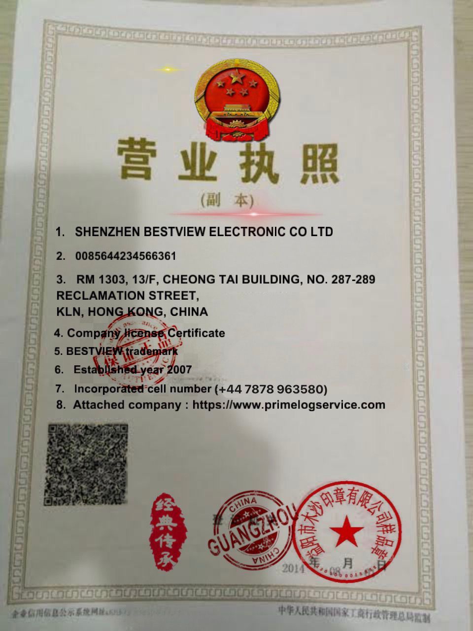 Zanim przeszedłem do kolejnych pytań postanowiłem dowiedzieć się nieco więcej o lokalizacji firmy. Ta standardowo już mieści się oczywiście w Hong Kongu, a pod owym adresem zarejestrowane jest przedsiębiorstwo o nazwie SHENZEN BESTVIEW ELECTRONIC. Trochę kojarzy mi się z basenami, trochę z elektroniką, ale nijak ta nazwa ma się do motocykli. Sprzedawca dumnie wysłał mi jeszcze certyfikat potwierdzający jakąś licencję, ale nie doszukałem się w niej jakiegokolwiek związku z CFMoto.