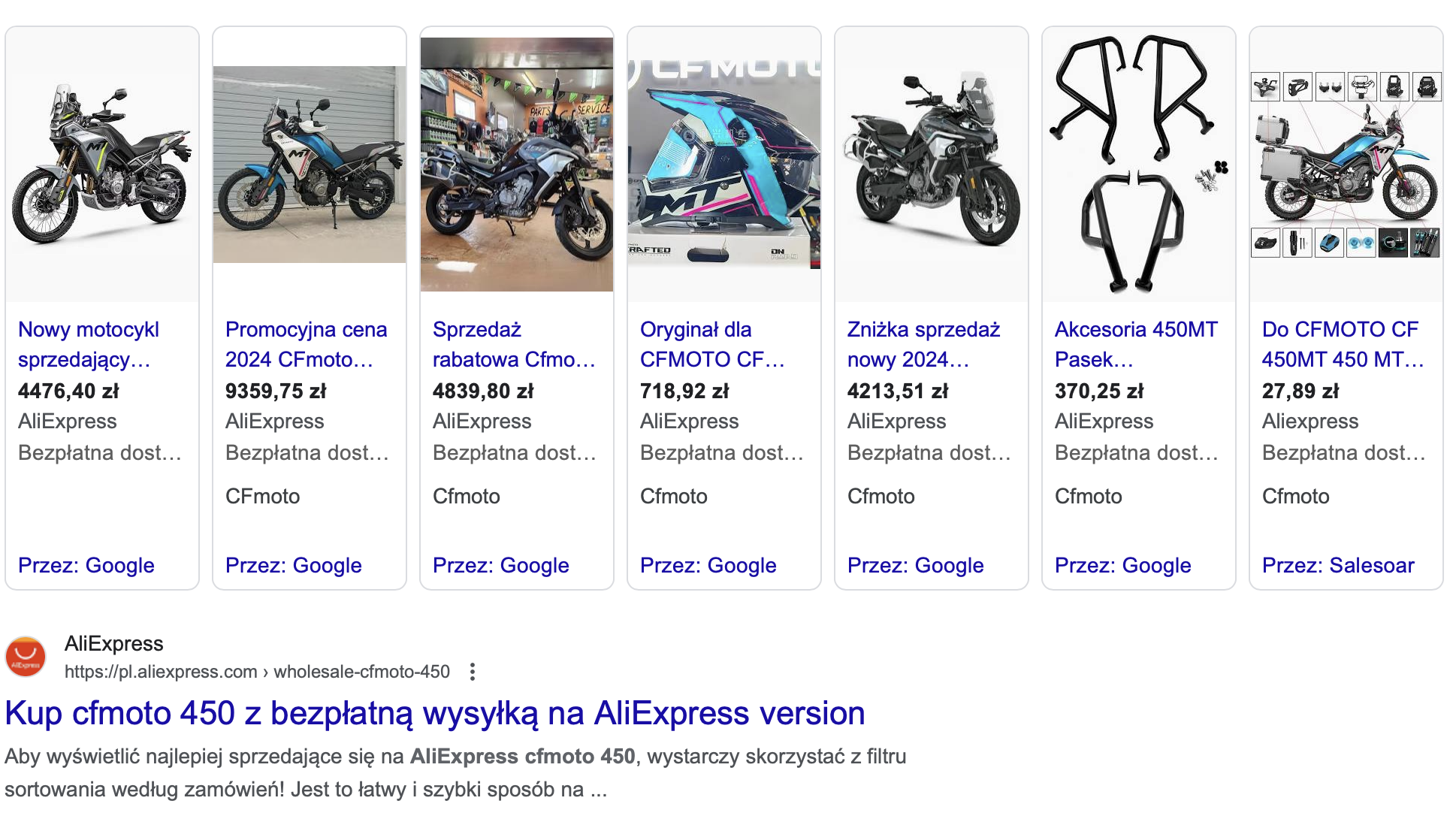Zrezygnowałem z zamówienia po informacjach uzyskanych od Tobiasza, który przeprowadził długą rozmowę z polskim importerem CFMoto. Wszystko jest maksymalnie podejrzane na każdym kroku i jeżeli chodziłoby o dziecięcy motorek spalinowy do upalania po podwórku to byłbym skłonny zaryzykować kilka stówek. Tutaj w grę wchodzi grubo ponad 5000 zł, a do tego dochodzą potężne koszty związane z rzekomym „zarejestrowaniem”. Sam podatek w wysokości najprawdopodobniej 10 lub 20%, do tego opłaty celne, koszty rejestracji, tłumaczenia dokumentów i nadal nie będę miał pewności, że 450 MT otrzyma polską tablicę rejestracyjną. Istnieje potężne prawdopodobieństwo, że wraz z kupnem tego motocykla na swoim ogrodzie będę musiał stworzyć tor, aby legalnie się na nim poruszać. Zresztą jeden z YouTube’rów o nazwie Jakub Maj – Discolm, już w zeszłym roku na życzenie klienta zajął się dokładnym sprawdzeniem ofert motocykli z Alieexpress. W tamtym przypadku przesłane zdjęcia oraz film pochodziły z oficjalnych salonów sprzedaży z USA, więc wykonanie przelewu wiązałoby się niemalże na pewno ze stratą pieniędzy i brakiem kontaktu ze strony sprzedającego.