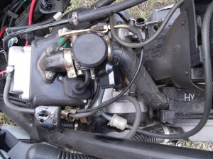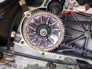 Dzisiaj mamy w miarę dobry dzień, więc postanowiłem pogrzebać w skuterku , uzbrojony w wiedzę ze Skuterowo.com ruszyłem na ogródek. Pierwsze co dostrzegłem to nowe siedlisko korozji. Następne co chciałem sprawdzić to świeca, jako że mam problemy z odpalaniem maszyny uznałem, że trop jest dobry. Ktoś napisał że trzeba zdjąć siedzenie, wiec tak uczyniłem i tu niespodzianka! Gdzie jest świeca? Zrobiłem zdjęcie i zasuwam do domu na kompa napisałem komentarz do swojego bloga, ale nikogo z Was akurat nie było, aby mi pomóc, więc z powrotem do Inki. Co ja się jej naszukałem. Tu zaglądam i tam szarpie i w końcu jest, mam bandytkę… Świecę wyczyściłem ustawiłem przerwę i naszła mnie myśl, aby zdjąć blokadę z wariatora – w końcu na Skuterowo.com ktoś napisał, że to łatwa sprawa. Zastanawiał mnie tylko ten klucz którego nie miałem, ale jako początkujący mechanik chciałem zobaczyć jak to tam wszystko wygląda. Aby odkręcić górne śruby musiałem zdemontować także obudowę filtra powietrza, nie było żadnego problemu. Po chwili ukazał mi się widok tego całego mechanizmu…