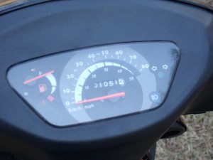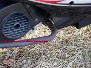 Skuter nie jest odblokowany, więc nie przekracza 50-czasem 55 km/h. Jakoś jesienią wybrałem się skuterkiem rano do pracy. 5.30 ciemno, odpaliłem maszynkę i pojechałem… Nie daleko, po 100 metrach raban pod skuterem niemiłosierny, więc szybki stop zaglądam pod skuterek i co widzę… Ech raczej czego nie widzę, ano nie widzę centralnej stopki, odpadła ,więc latareczka i w tył zwrot szukać części (dobrze że zawsze mam ją w schowku).