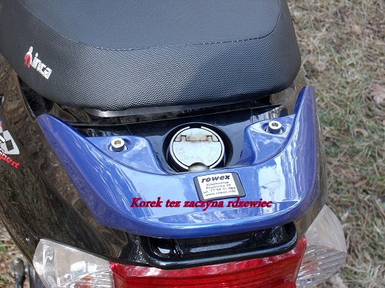 Przyszła wiosna, mamy ciepły początek marca, więc ruszyłem do garażu po skuter. Oglądam maszynę i wow! Na korku wlewu paliwa rdza na wydechu rdza, masakra.