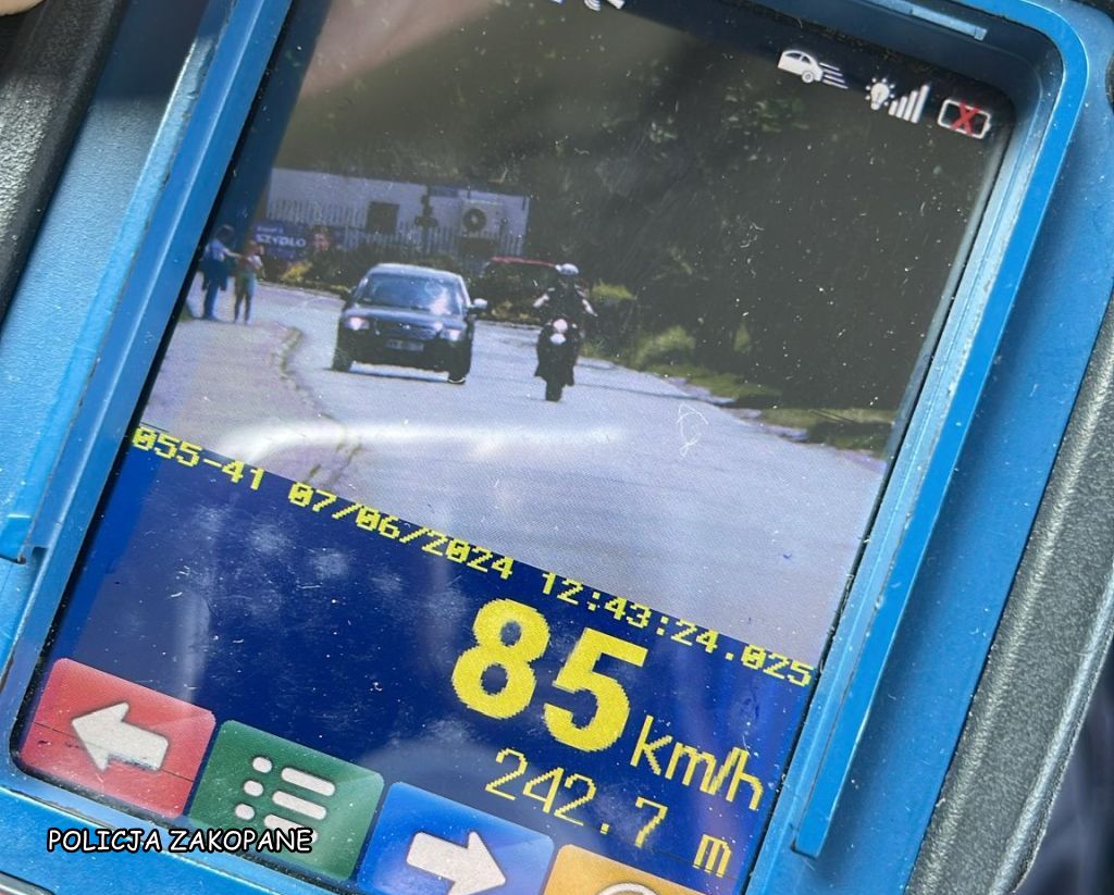 - Policjanci z zakopiańskiej drogówki z grupy „Speed”, w miejscowości Szaflary zauważyli jednoślad, którego kierujący przekroczył dozwoloną prędkość w terenie zabudowanym.