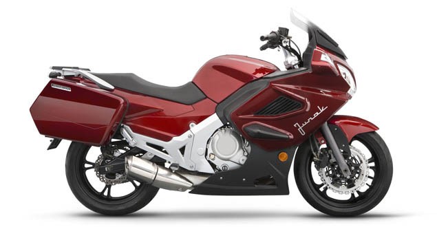 Junak TR650 to pierwszy model marki, którym bez dodatkowych modyfikacji można wybrać się w trasę. Już na pierwszy rzut oka widać takie detale, jak wysoka przednia szyba, kufry, rączka dla pasażera z miejscem na topcase czy umieszczone w przednich owiewkach ochronne nakładki. Motocykl podąża za aktualnymi trendami w projektowaniu tego typu maszyn, kusząc zainteresowanych obłymi, delikatnymi kształtami, w które nijak wpisują się umieszczone nad tylną lampą kierunkowskazy. Jak zapewnia producent, wyprofilowanie przednich osłon zapewnia maksimum ochrony dla górnej i dolnej części ciała bikera przed deszczem i wiatrem. Pokonywaniu dłuższych dystansów mają sprzyjać wygodne siedzisko oraz ergonomicznie ukształtowana kierownica. Do napędu „turysty” wykorzystano chłodzoną cieczą czterosuwową dwucylindrową rzędówkę o pojemności 650ccm zasilaną wtryskiem, która osiąga maksymalnie 61KM – może nie jest to wiele, ale do spokojnej turystyki drogami krajowymi wystarczy. Minusem jest zastosowany do zatrzymywania układ hamulcowy – z przodu dwie ogromne tarcze współpracują z dwutłoczkowymi zaciskami, które nijak nie pasują do mocy i masy pojazdu. Czy w obliczu zalet i wad cena 19.999zł jest adekwatna? Oceńcie sami.