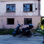 W południowo – zachodniej części Stolicy trwają przygotowania do poprowadzenia obwodnicy. W ekspresowym tempie wysiedlono okoliczne domy. Równie szybko zrównano je z ziemią. Całość wygląda przerażająco. Odkryte studnie, gdzieniegdzie zabawki, lodówki, trafiła się nawet świąteczna choinka. Jednak nie wszystkie gospodarstwa zdążył już spotkać ten los. Można dostrzec pustostany, taki jak na zdjęciu. Podziwiając tę okolicę trzeba było być bardzo ostrożnym. Nie brakuje tu porozbijanego szkła czy wystających z ziemi resztek zbrojeń. Dla ogumienia skutera spotkanie z takimi przedmiotami skończyłoby się na pace pomocy drogowej, bo złapana guma w jednośladzie to chyba najmniej fajnie co może się przydarzyć.