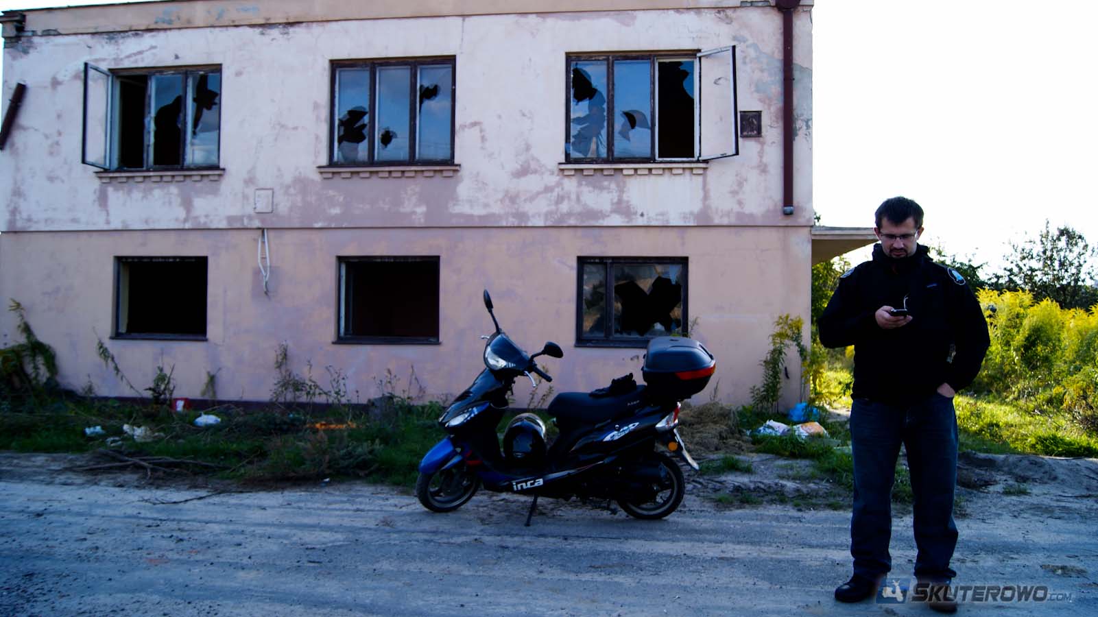 Jak tylko wyciągnęliśmy aparaty zbiegły się dzieci szukające wrażeń. Jeden z tam obecnych chłopców zawsze jak mnie widzi pyta czy „nie mam jakiegoś skutera do sprzedania”. Pewnie myśli, że jestem dealerem, bo często widział, że z garażu wyjeżdżam co raz to innym pojazdem. Chyba nie był świadom do końca tego, że to nie mój sprzęt, a jedynie użyczone egzemplarze testowe przez producentów. Dzieci trochę poszalały, porozbijały szyby, lustra, weszły na dach i poruszając pałąkiem dostarczającym prąd z powietrza do budynku spowodowały zwarcie w instalacji. Dopiero wtedy się zorientowały, że my aż tak liberalni nie jesteśmy. Przedszkole musiało uciekać po naszej interwencji. Kilka minut po tym pojawiła się policja. Nie wiadomo czy to dlatego, bo okolica nie miała prądu, czy tak po prostu, rutynowo. Zatrzymaliśmy radiowóz i zgłosiliśmy ogólny rysopis grupy dzieci, którym ewidentnie się nudzi. Trzeba działać, jeśli chcemy, aby przyszłe pokolenie wyszło na ludzi!