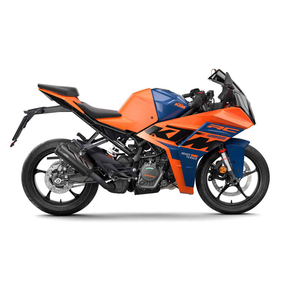 Jeżeli wolisz bardzie sportowe wrażenia, to alternatywą dla KTM 125 Duke będzie KTM RC 125. Jednak producent nie poszedł tu na łatwiznę i choć konstrukcja podwozia i silnik są dzielone, to ergonomicznie motocykl jest zaprojektowany zupełnie inaczej. Ponownie mamy silnik o mocy 15 KM i zawieszenie z widelcem upside-down WP APEX 43 mm. Za hamowanie są odpowiedzialne produkty BYBRE – marki Brembo produkującej układy hamulcowe dla motocykli budżetowych i z silnikami o mniejszych pojemnościach. Możesz też wyłączyć ABS dla tylnego koła dzięki funkcji SUPERMOTO ABS. Kierownica ma regulację wysokości w zakresie 10 mm.