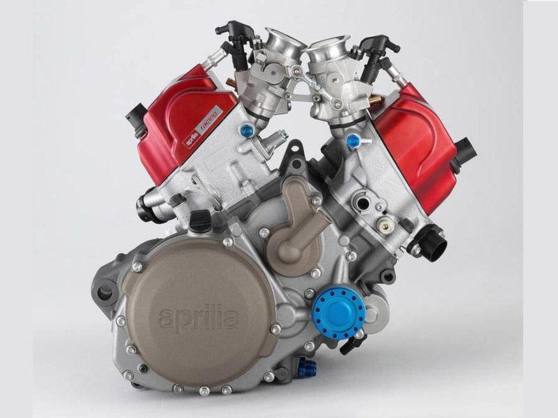 Ekipa z Noale, prezentując swoje modele RXV 450 i 550 (zwane też 4.5 i 5.5) sięgnęła jedynie po dwie konwencjonalne rzeczy – koła w normalnym rozmiarze 18/21 cali i amortyzatory Marzocchi. Reszta natomiast była dość nietuzinkowa jak na taki sprzęt. Przede wszystkim silnik. Nie był to singiel, a widlasta dwójka. Co ważne, Aprilia wcale nie sięgnęła po niego dlatego, że stosowała go w innych motocyklach i był pod ręką. To całkowicie nowa jednostka napędowa – od początku projektowana z myślą o sprzętach supermoto i terenowych. Zadebiutowała zresztą w pokazanej rok wcześniej wersji SXV, czyli Supermoto, która dała Aprilii tytuł MŚ Supermoto S2.