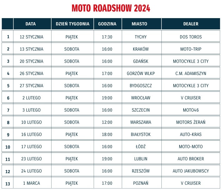 Harmonogram spotkań w całej Polsce w ramach Suzuki Moto Road Show 2024:
