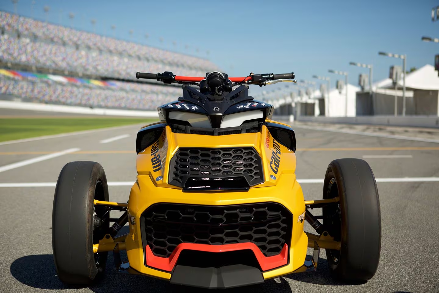 W momencie premiery tego koncepcyjnego modelu marka chwaliła się, że poza montażem turbosprężarki do silnika Rotax, sporo uwagi poświęcono również kształtom. Te musiały zostać przeprojektowane, aby generować większą siłę docisku i zmniejszyć opory aerodynamiczne. Jednocześnie popracowano trochę nad dodatkowym przednim spojlerem rodem z NASCAR, a także stworzono wyjątkowe malowanie, które ma za zadnie podkreślić wszystkie najważniejsze punkty w trójkołowcu. Ostatnim elementem było założenie opon wyścigowych typu slick.