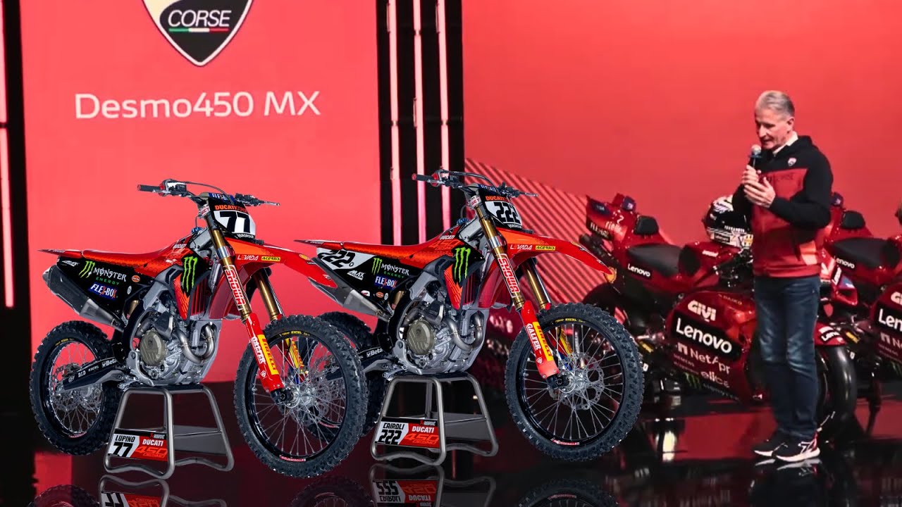 O motocyklu crossowym wiemy już całkiem sporo. Pierwsze spekulacje mówiły o tym, że model ten napędzać będzie nowy singiel Superquadro, który trafił do Hypermotarda 698, ale taki ruch byłby kompletnie bez sensu, gdyż motocykl nie spełniałby wówczas warunków technicznych zawodów MX1. W ramie znalazł się zatem silnik o pojemności 450 cm3 w konfiguracji desmo, która od lat jest wyróżnikiem Ducati w motorsporcie, a w motocrossie jest zupełną nowością. Włosi zapowiadają, że w przyszłości w gamie pojawi się enduro z homologacją drogową, które zostanie oparte właśnie na Desmo 450MX. Ducati kontynuuje zatem jego rozwój i ma zamiar możliwe najlepiej przetestować go podczas przyszłorocznych mistrzostw świata. Dodatkowo Cairoli wspomina, że niezbędne jest dokończenie platformy do crossa o pojemności 250 cm3, który również jest zaliczany do off-roadowego projektu.