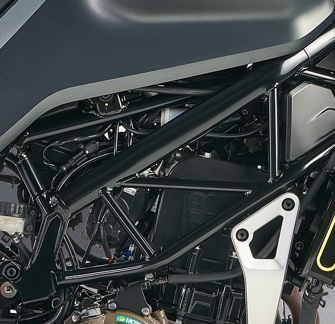 Wyposażono go w hamulce hydrauliczne z zaciskami ByBre, które w połączeniu ze sporych rozmiarów tarczą radzą sobie idealnie. Dzięki systemowi ABS od Bosch są jeszcze bardziej skuteczne. Jeśli jesteś bardziej zaawansowanym kierowcą, masz możliwość jego wyłączenia podczas jazdy.