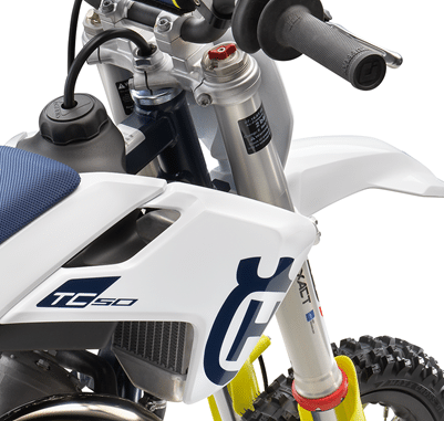 Pięćdziesiątka Enduro z ramą wykonaną ze stali chromowo-molibdenowej, która zapewnia łatwe pokonywanie zakrętów i stabilność podczas jazdy. Husqvarna TC 50 wyposażony został w najnowsze rozwiązania technologiczne, w tym nowe zawieszenie WP XACT z lekkim widelcem, które świetnie tłumi napotkane nierówności. Z tyłu zainstalowano Monoshock WP o nieco mniejszym, ale równie imponującym skoku – 185 mm. Zawieszenie jest w pełni regulowane, dzięki czemu dopasujesz je do własnych potrzeb i aktualnych warunków jezdnych.