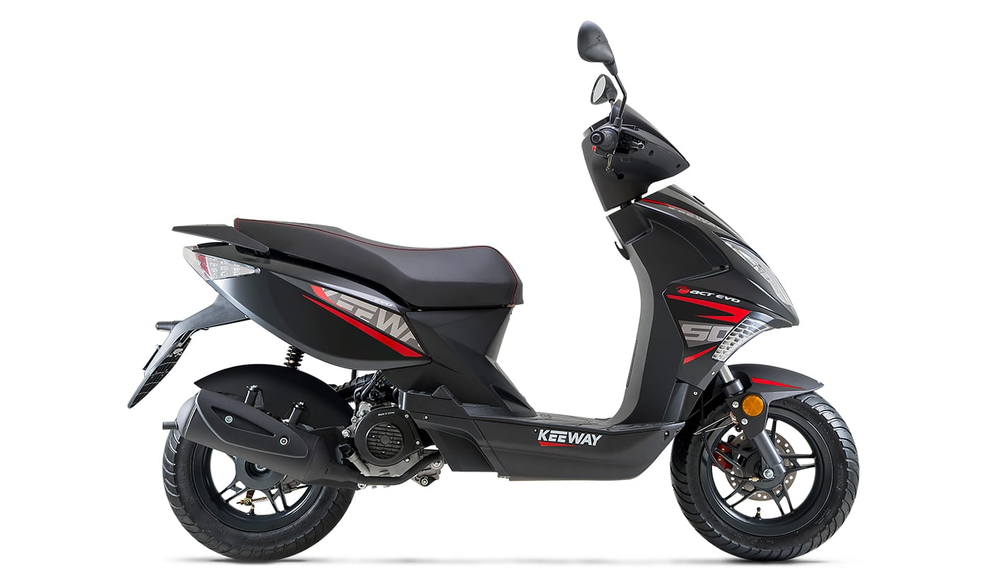 F-ACT EVO to kolejna propozycja ze stajni Keewaya z silnikiem o pojemności 50 cm3. Skuter wyróżnia się swoją stylistyką, w której dostrzec możemy sportowy charakter i smukłą sylwetkę. Dynamiczna i sztywna konstrukcja gwarantuje przyjemność z jazdy na najwyższym poziomie. Agresywnie poprowadzone linie poprawiają aerodynamikę skutera. Skuter skierowany jest przede wszystkim do młodych osób, które docenią jego przyspieszenie i łatwość prowadzenia. Keeway F-ACT EVO pochwalić się może niską wagą i wydajnymi hamulcami tarczowymi, które pomogą w awaryjnych sytuacjach na drodze.