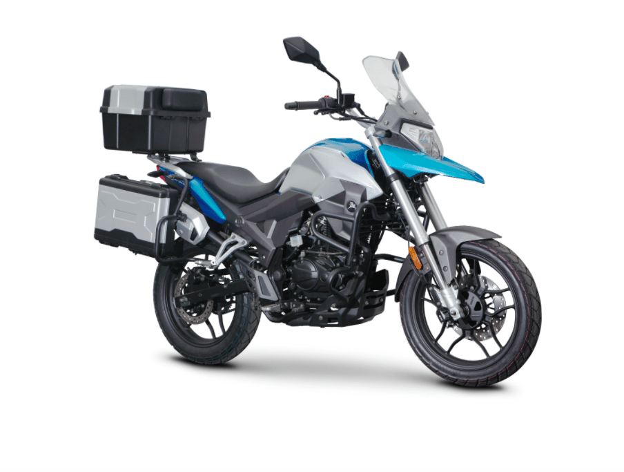 Turystyczna propozycja od Rometa, do której wzdychać będzie każdy fan górskich i wszelkich pozamiejskich eskapad. Urzeka on nie tylko swoim wyglądem, dodatkowymi kuframi, w których spakujemy najpotrzebniejsze rzeczy podczas dalszej wycieczki, ale również komponenty. Śmiało porównywany do Hondy Varadero i nie bezpodstawnie. Spore rozmiary, niewielka masa i oryginalny, nowoczesny design, który przykuwa uwagę. Pomimo, iż ADV 125 to brat bliźniak tego samego modelu z silnikiem o pojemności 250 cm3 – tutaj producent zdecydował się na zastosowanie innej ramy, co pozwoliło obniżyć masę i poprawić wyniki. Fakt, ADV 125 nie posiada 15 KM, jednak silnik jest bardzo elastyczny, dobrze się wkręca, a jazda, niezależnie od terenu, to czysta przyjemność. Jak na nowoczesny motocykl przystało, spotkamy się tutaj z elektrycznym wtryskiem paliwa. Z przodu i z tyłu sporych rozmiarów tarcze z kombinowanym układem hamulcowym, natomiast nad naszą wygodą w trakcie jazdy i tłumieniem wszelkich nierówności dbają amortyzatory typu upside-down.
