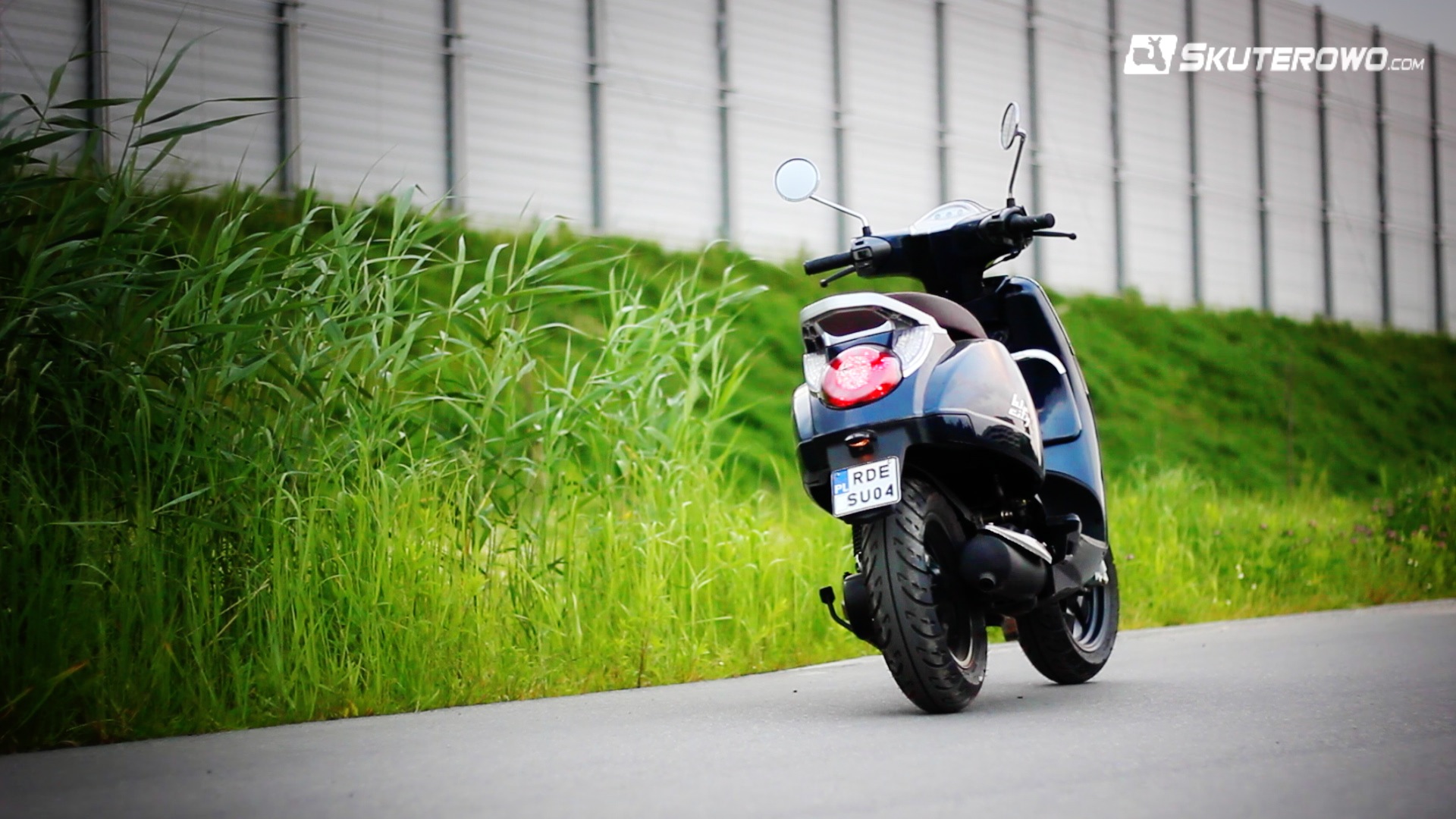 A co na deser? Oczywiście hamulce. O dziwo nie są super wydajne. Przednia tarcza jest po prostu za mała. W wielu innych skuterach kierowca w razie awaryjnego hamowania jest w stanie zablokować przednie koło. Tutaj ani przedni, ani tylny kapeć nie jest w stanie zatrzymać się w miejscu na suchym i czystym asfalcie. Zajrzeliśmy w dane techniczne w nadziei, że może masa własna Rometa Blu City jest jakoś niezwykle wysoka. Nic z tych rzeczy. Skuter waży standardowe 87 kg.