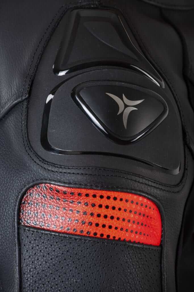 Zewnętrznie na kurtce znajdują się twarde ochraniacze ramion i łokci. Te drugie są wymienne i dostępne w różnych kolorach, więc jeśli przyjdzie szorować łokciem na torze – nic strasznego. W standardzie oczywiście znajdują się także slidery na kolanach.