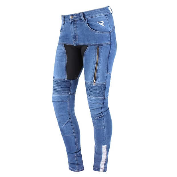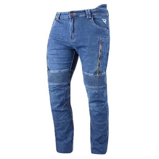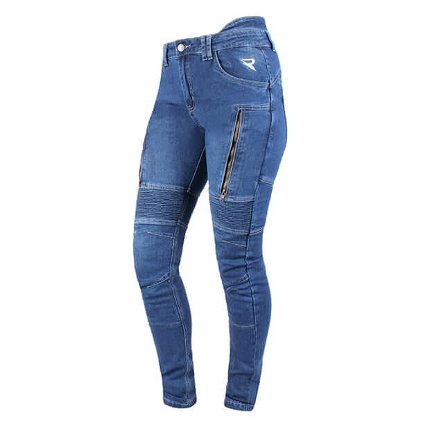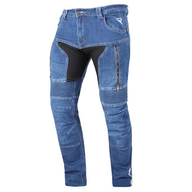 Wykonane ze 100% 12-to uncyjnego denimu. Podszewka z kevlaru (100% Para-Aramid). W zestawie certyfikowane ochraniacze kolan EN 1621-1:2012 – level 2 z regulacją wysokości, które zapewniają najwyższe bezpieczeństwo. Wyposażone również w kieszenie na ochraniacze bioder. Stretch panele umieszczone nad kolanami i na biodrach dla większej swobody ruchów. Otwory wentylacyjne z przodu z zamkiem. Podwyższona część biodrowa. 4 kieszenie zewnętrzne.