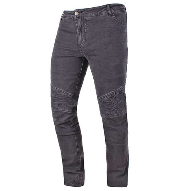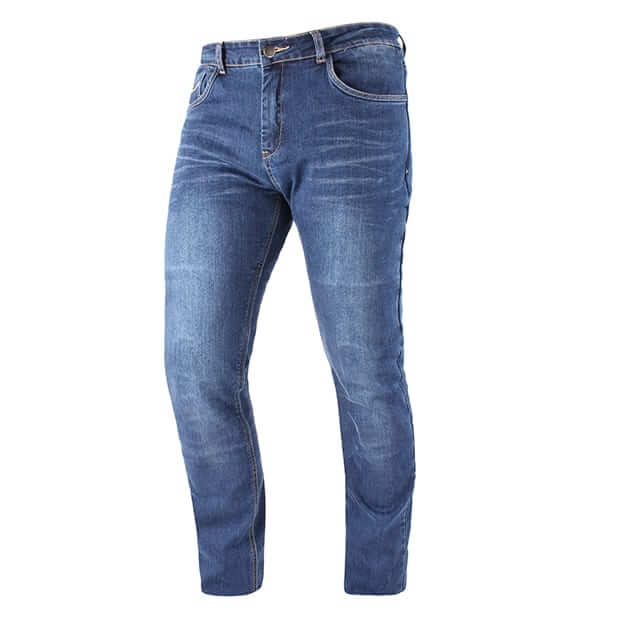 Wykonane ze 100% 12-to uncyjnego denimu. Podszewka z kevlaru (100% Para-Aramid). W zestawie certyfikowane ochraniacze kolan EN 1621-1:2012 – level 2 z regulacją wysokości. Jeansy są bardzo wytrzymałe, doskonale elastyczne i odporne na przetarcie. Posiadają kieszenie na ochraniacze bioder oraz kość ogonową. 4 kieszenie zewnętrzne.