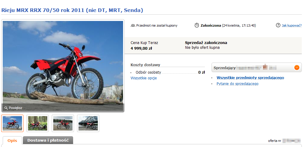 Ostatnią i najważniejszą kwestią jest cena. Wystawiając ogłoszenie w Internecie podajmy cenę wyższą, niż chcemy otrzymać za motorower – jeżeli nie będzie odzewu ze strony kupujących, możemy stopniowo obniżać kwotę, aż będzie więcej chętnych. Pamiętajmy przy tym, że ludzie lubią się targować i niestety trochę będziemy musieli zejść z ceny. Alternatywą dla takiego rozwiązania jest dołożenie jakiegoś gratisu o którym nie wspomnieliśmy w aukcji. Zamiast godzić się na zejście z ceny 300zł możemy zaproponować 150zł i dołożenie kasku lub kufra gratis. W praktyce okazuje się, że zainteresowani lubią takie gadżety i czasami sprawiają one, że odzyskamy kilka groszy za coś, co i tak leżałoby w szafie. Warto także zastanowić się nad każdą rozsądną ofertą – czasami w praktyce okazuje się, że lepiej jest zejść z ceny 200zł, niż kolejne dwa miesiące szukać klienta mogącego dać więcej, ale stracić przy tym 100zł na abonament za parking.