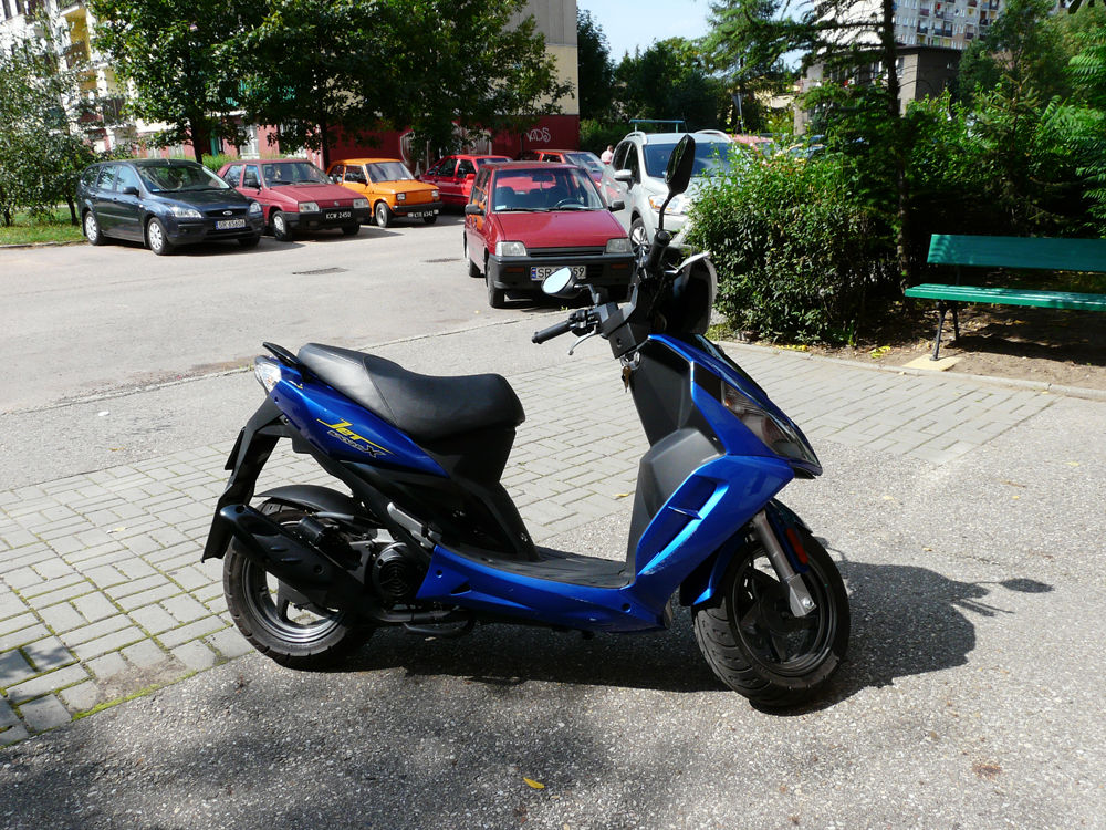Sym Jet Sport X 50R jest dobry na pierwszy skuter, ale cena (7300zł) jest za duża jak na skuter chłodzony powietrzem z bębnem z tyłu. Ja przy kupowaniu miałem szczęście, bo w salonie skuter stał 2 lata i kupiłem go w roku 2009 za 5000zł.