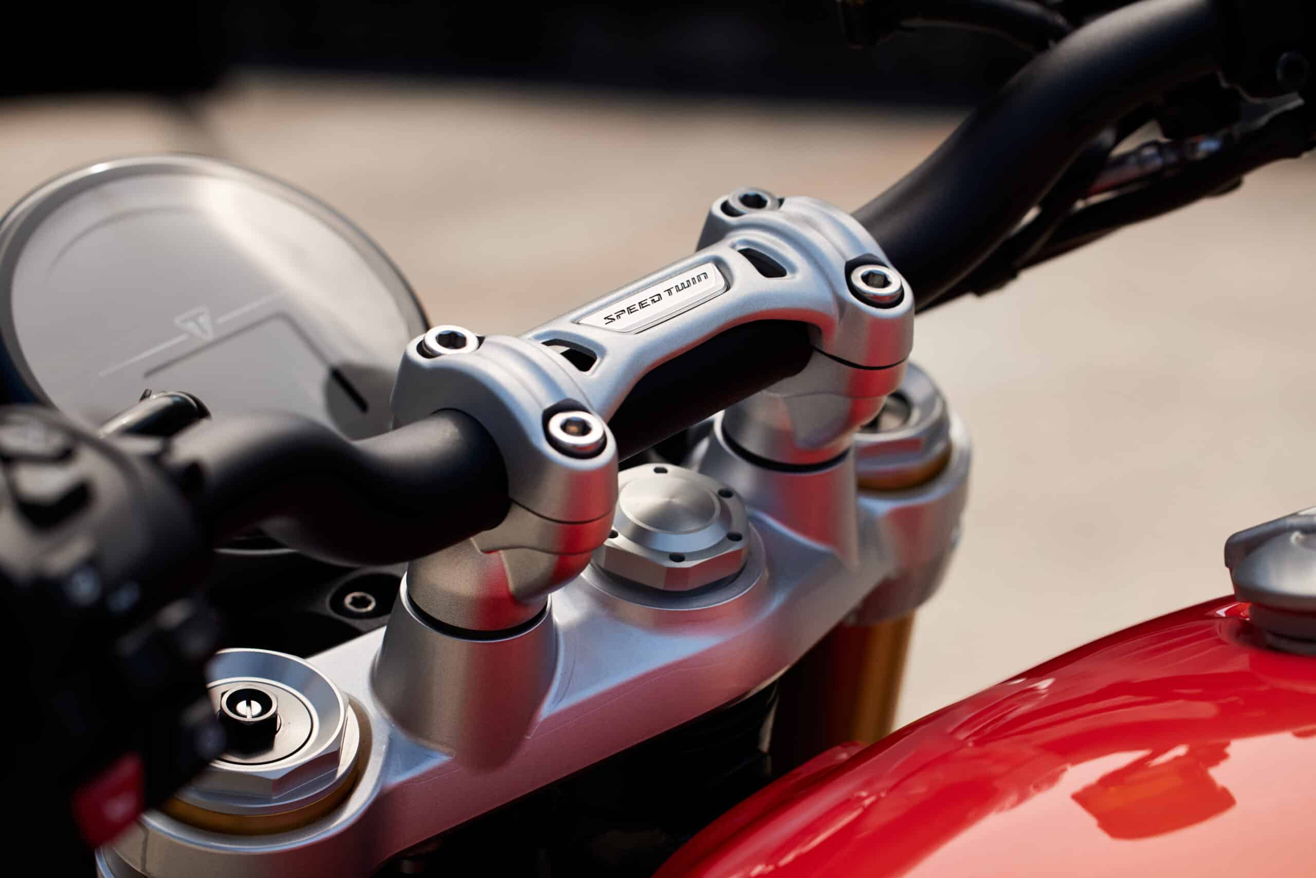Nowe wyświetlacze LCD i TFT zostały starannie umieszczone na klasycznej, okrągłej tarczy, co poprawiło widoczność i funkcjonalność, przy jednoczesnym zachowaniu ponadczasowego wyglądu Speed Twin’a. Umożliwiają one kompatybilność z nawigacją typu „zakręt po zakręcie” i łączność z telefonem, a także skrywają wygodne gniazdo ładowania USB-C.