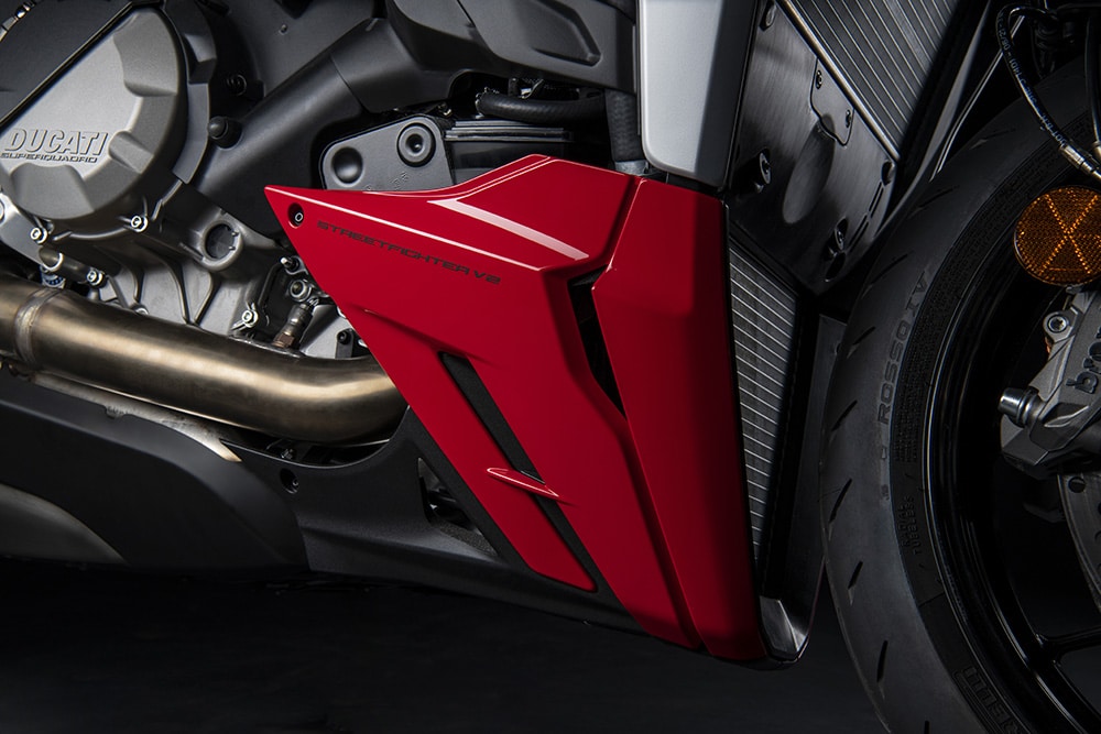 Topowy Streetfighter jest wyposażony w system Öhlins Smart EC 2.0, który może zmieniać tłumienie w zależności od stylu jazdy motocyklisty, a wraz z dwupłatowymi skrzydłami zwiększa pewność prowadzenia i zapewnia najlepsze osiągi przy sportowym użytkowaniu.