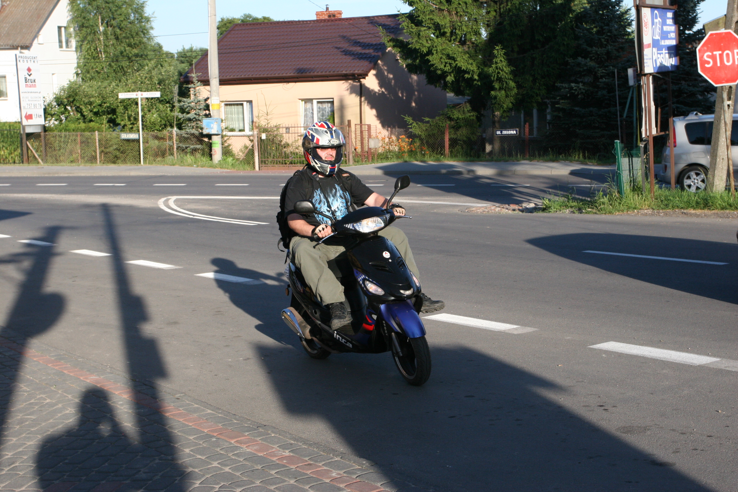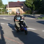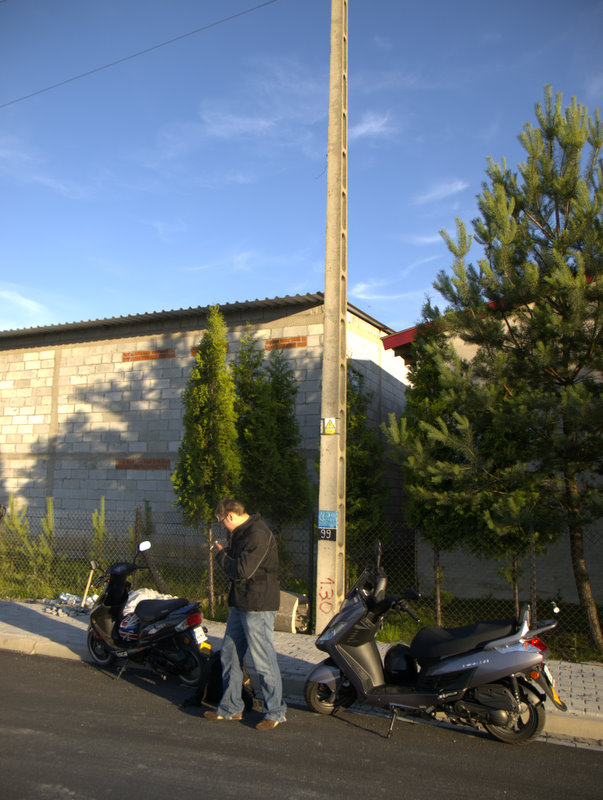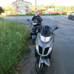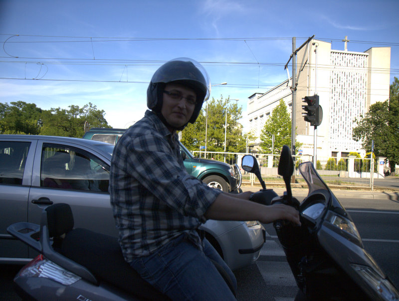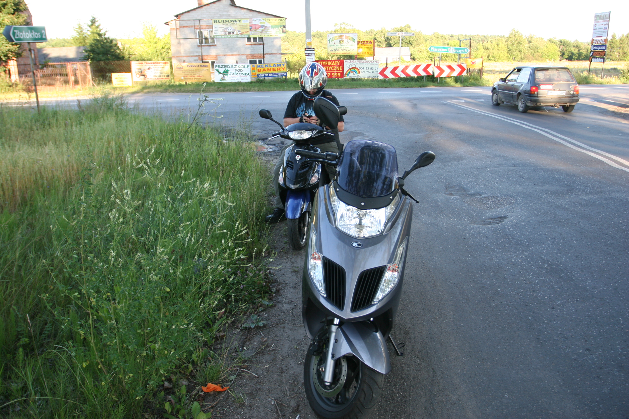 Piątek był bardzo upalny, w słońcu ponad 30 stopni, mimo, że wyruszaliśmy około 18. Ruch na wylotówkach Warszawy też był upiorny. Przemek, który dopiero zaczyna swoją przygodę ze skuterem miał trochę obaw w korkach, ale świetnie sobie poradził, choć było kilka sytuacji w których, jak mówi „ciśnienie skoczyło”. W sumie nie ma się co dziwić, połowa stołecznej społeczności w piątkowy wieczór wraca do swoich domów oddalonych o kilkadziesiąt, czy kilkaset kilometrów, a w takim upale nie trudno o dekoncentrację, czy brak cierpliwości do kierowców jednośladów, którzy „złośliwie” przeciskają się między samochodami, żeby tylko pokazać, że „Ja w Korkach nie Stoję”.