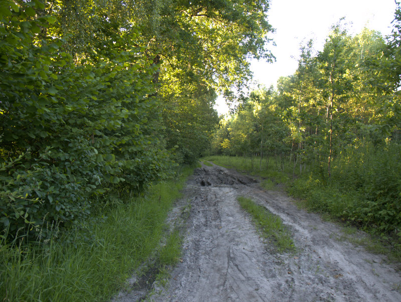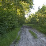 Ruszamy dalej, po przejechaniu kilkuset metrów okazało się jak wielki błąd popełniliśmy. Odbiliśmy na wschód zdecydowanie za późno. Naszym oczom ukazał się znak zwiastujący ślepą uliczkę. Był to wjazd do lasu. O ile kleszczy nie ma co się obawiać, o tyle nie była to ekspedycja na crossach, a skuterach. Jazda w błocie przez kilka kilometrów nie wchodzi w grę!