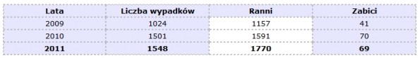 Sprzedaż podana z lat 2010-2011 a wypadki od 2009 :))