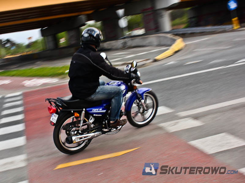 Manic przejechał ze Skuterowo.com ponad 400 km w mieście, poza miastem, w dzień, w nocy, w upale i deszczu. W każdych okolicznościach służył wiernie, jednak niekiedy niedomagał. Słabej jakości ogumienie powoduje przy wyższych prędkościach wibracje. W przypadku tego egzemplarza ratunkiem powinno być wyważenie kół. Dodatkowo opony nie do końca radzą sobie na mokrej nawierzchni. Na pochwałę zasługuje z kolei oświetlenie. Jesteśmy zarówno dobrze widoczni, jak i nie możemy narzekać podczas jazdy na nieoświetlonych, drogach powiatowych. Warto również dodać, że zawieszenie Manica podczas dłuższych wypadów dba dobrze o nasz komfort podróżowania. Kanapa z kolei jest nieco za wąska. Po kilkunastu minutach drętwieje nam pewna część ciała.
