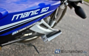 Takim apetytem na paliwo może się legitymować Manic za sprawą czterosuwowego silnika. To niemal ta sama konstrukcja, jaką można spotkać w omawianych już przez Skuterowo.com Pro 50 czy Neken 50. To bezobsługowa i dynamiczna jednostka. Może się też pochwalić dobrą elastycznością. Ma jedną wadę – po przekroczeniu sześciu tysięcy obrotów na niskich przełożeniach wibruje niemiłosiernie powodując drętwienie kończyn.