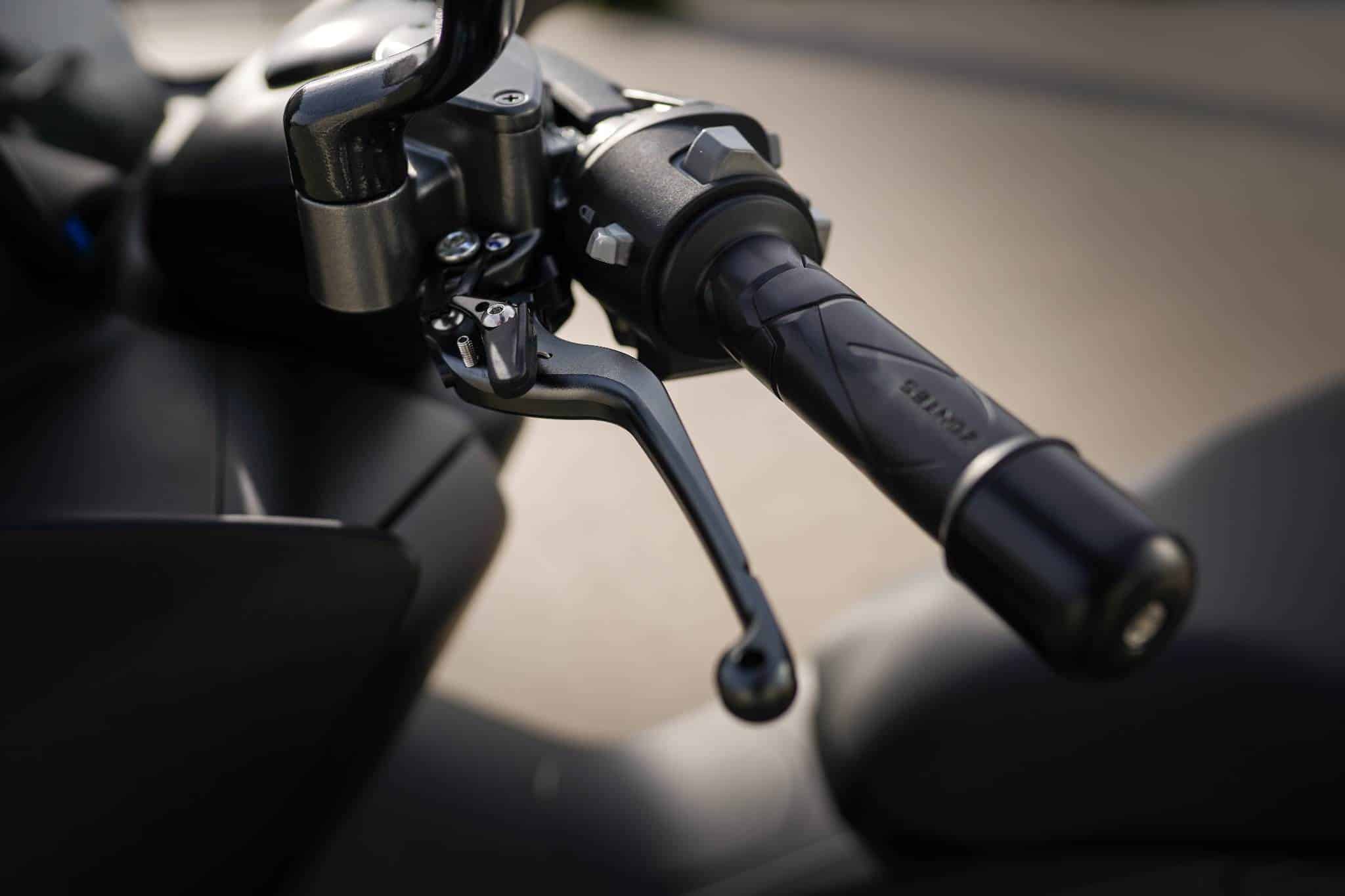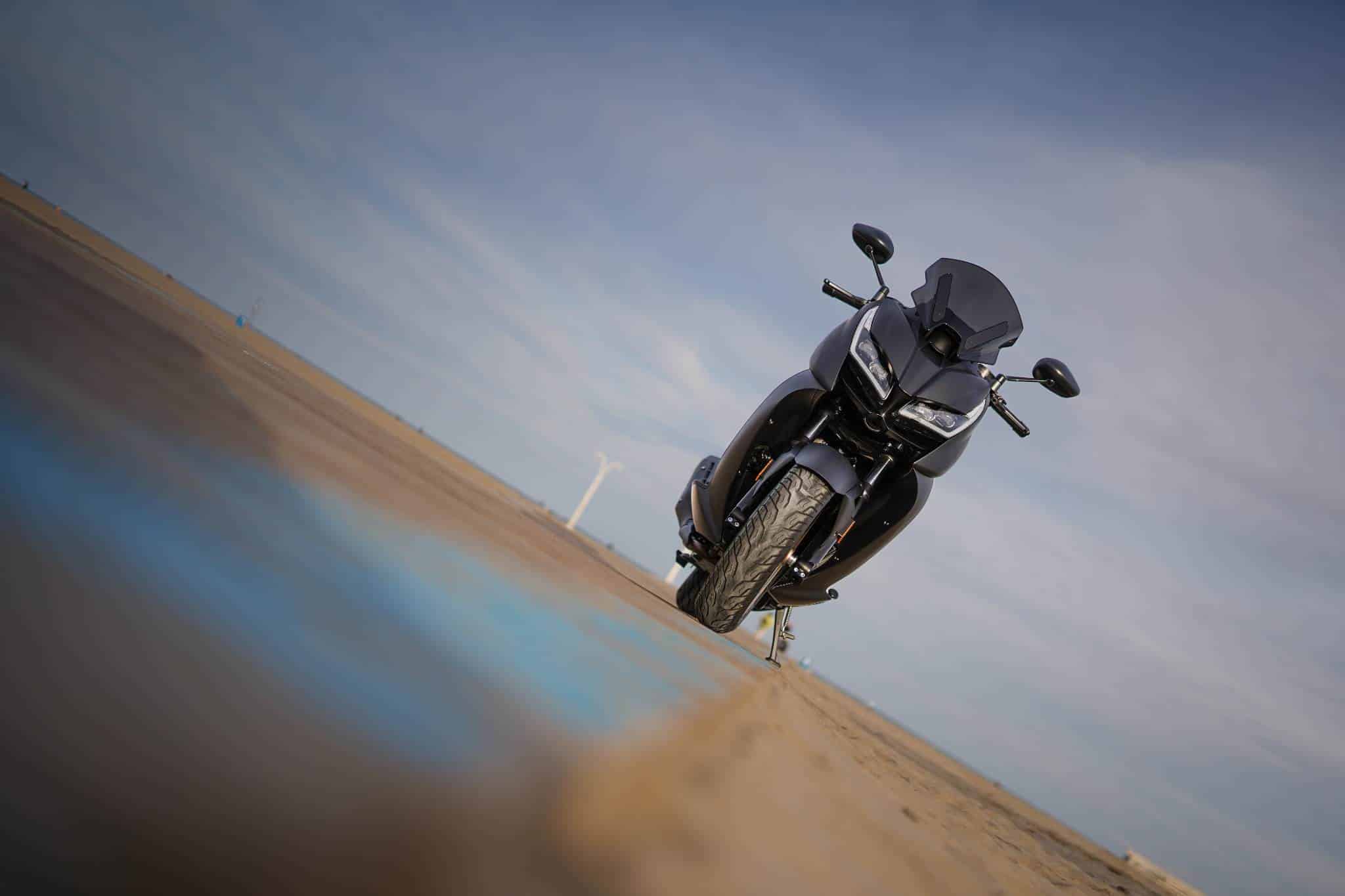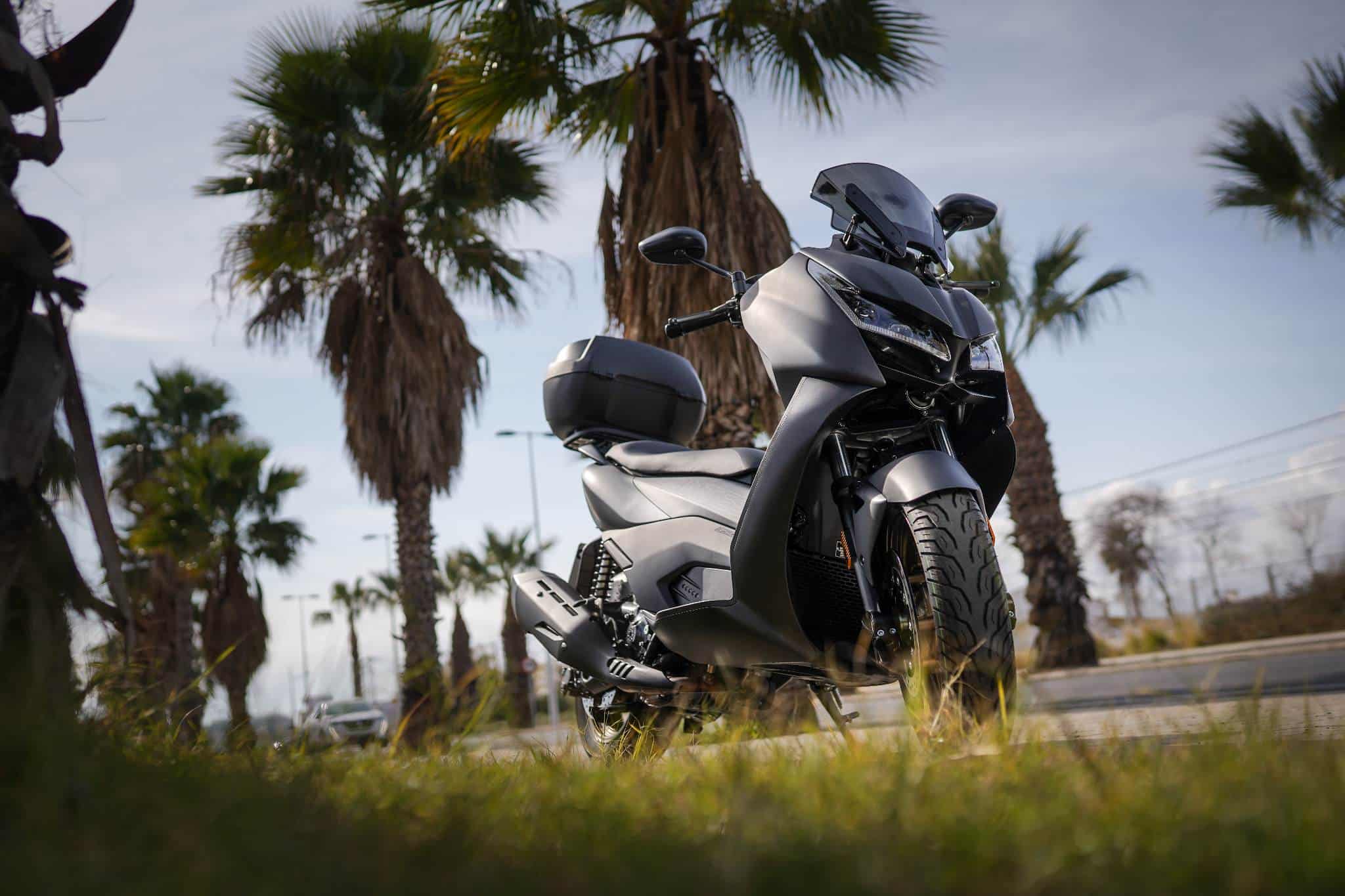 Nad bezpieczeństwem czuwa wydajny układ hamulcowy z przednim zaciskiem mocowanym radialnie, który wspomagany jest przez dwukanałowy system ABS. Działa to tak jak należy i dobrze, że tak jest, bo przyspieszenia generowane przez napęd potrzebują porządnego homonta. O kontrolę przyczepności również podczas przyspieszania dba zastosowany po raz pierwszy w pojazdach marki Zontes układ kontroli trakcji TCS. Co ciekawe, udało mi się sprawdzić jego obecność nawet na suchym hiszpańskim asfalcie. Działa, choć znam bardziej płynnie pracujące układy kontroli trakcji, ale potrafi wywiązać się z powierzonego mu zadania. Warto na pewno także wspomnieć o dwóch trybach jazdy, bezkluczykowej obsłudze, kontroli ciśnienia i temperatury w oponach, czy elektrycznie regulowanej wysokości szyby.